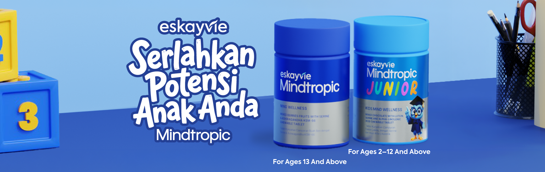Our most loved brain booster, Eskayvie Mindtropic, supports focus, memory, and mental clarity in enhancing cognitive function for both adults and children.